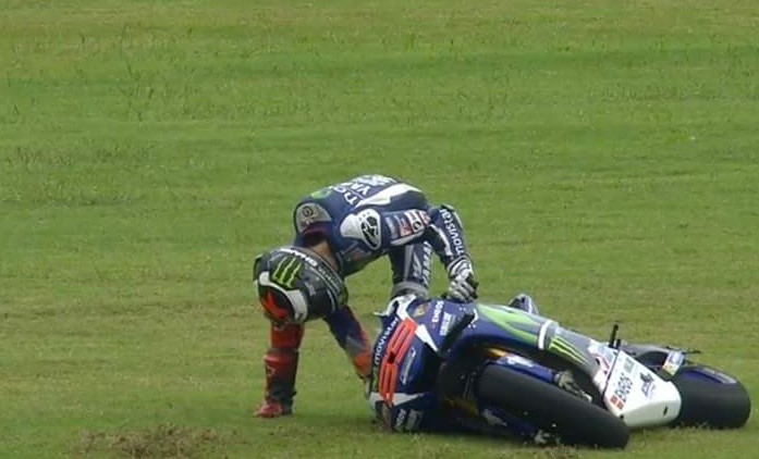 Jorge Lorenzo Ciut Nyalinya Ketika Lintasan Tidak Kering sepenuhnya..???