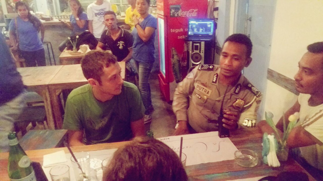 Terlihat dalam salah satu update valentino Rossi sedang bicara dengan Polisi Indonesia… apakah pak Polisi tidak kenal dia ya… Just Kidding