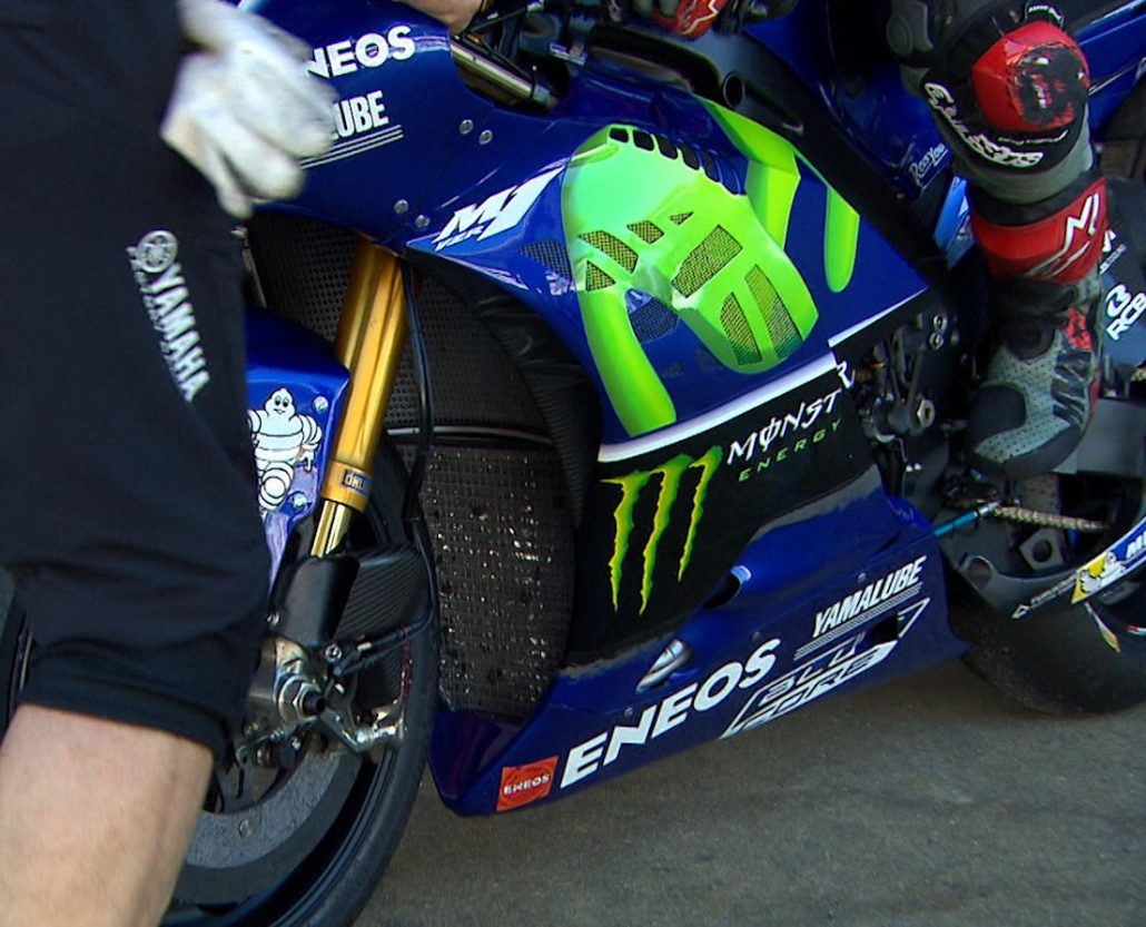 Seperti diwartakan gpone.com(12/06/2017)dalam beberapa menit terakhir tes di sirkuit Catalunya, Barcelona, munculah motor yang tidak biasanya dari garasi Yamaha, adalah versi terbaru dengan inner winglet atau sayap yang tersembunyi, memang bukan hal baru namun yang membedakan adalah adanya  lobang “saringan udara” dibagian samping motor.
