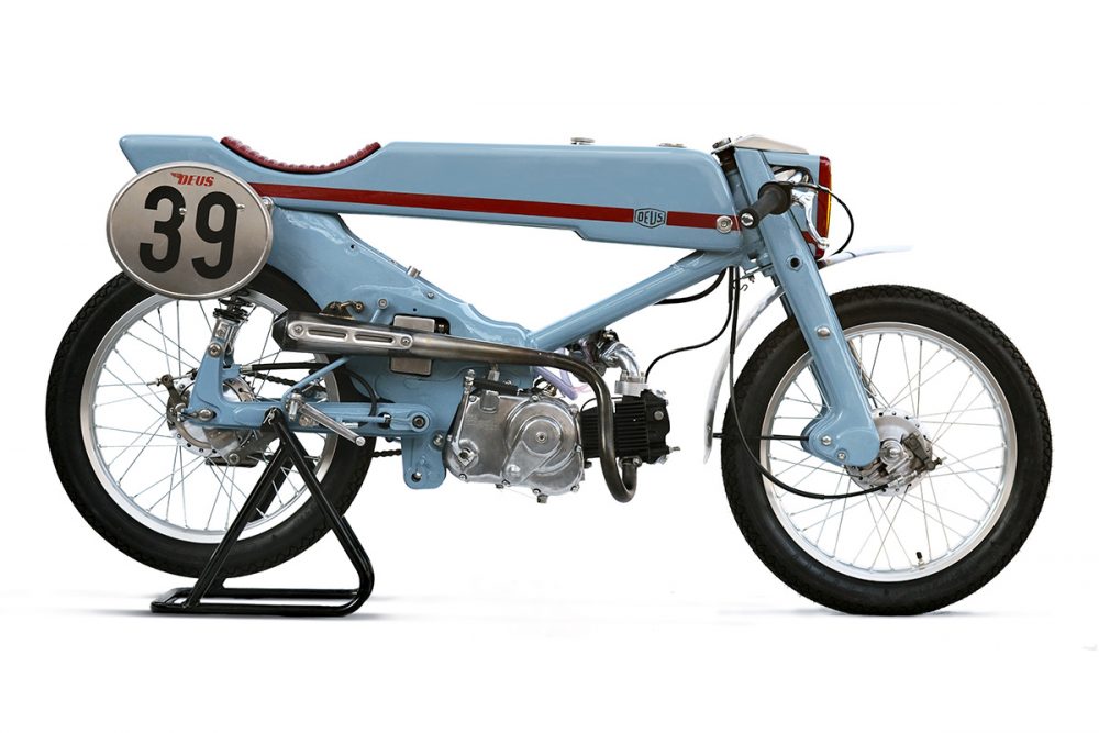 Kita memang tidak akan mengenali lagi sebagai motor bebek karena rangkanya berubah total menjadi garis lurus dari lampu depan hingga bagian buritan motor. Menyisakan jok “coak” bagi pengendaranya sepertinya bahan bakar akan bisa muat banyak. Walau tidak sesuai karena ini bukan motor touring. Model ini berasal dari buah pikiran Matthew Roberts yang menjabat sebagai Director of Motorcycle Operations di Deus Jepang.