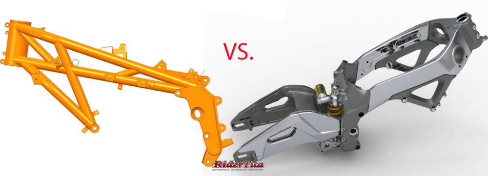 Sejauh mana pengaruh lengan ayun serat karbon pada rangka teralis KTM RC16 dibanding aluminium… Jawabnya adalah apakah sasis atau rangka Aluminum lebih superior dibandingkan tubular ( teralis) ?