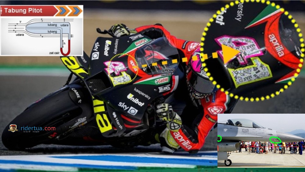 RiderTua.com – Sebuah “Tabung Pitot” dapat dilihat nempel dibagian depan (di atas nomor) motor Aleix Espargaro dan Lorenzo Savadori. Infonya bertujuan untuk menghitung kecepatan yang tepat dan tidak relatif terhadap diameter ban di mana nilainya bervariasi tergantung kecepatan. Bisa jadi hal ini sebagai riset berkesinambungan untuk aerodinamika RS-GP yang getol dilakukan tim Noale itu selama musim berjalan.. Tabung pitot memang digunakan untuk mengukur kelajuan udara…