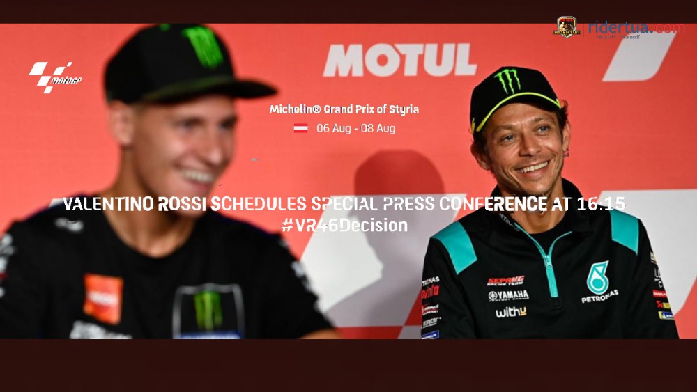 RiderTua.com – Breaking news: Valentino Rossi akan mengadakan konferensi pers luar biasa pada pukul 16.15 waktu setempat hari ini (9.15 malam WIB). Jadwal hari Kamis di MotoGP Austria baru saja diperbarui untuk memasukkan: “Konferensi Pers Luar Biasa dari pembalap MotoGP Italia Valentino Rossi yang dijadwalkan pukul 16:15”.. Apakah dia akan pensiun?… Sepertinya semua mata akan tertuju dengan berita tentang Rossi nanti malam. Dalam ulasannya laman resmi MotoGP.com mengemukakan dua kemungkinan: gantung helm, membalap di timnya sendiri… Dan akhirnya, rumor dan intrik seputar apakah Valentino Rossi akan gantung helm atau melanjutkan satu tahun lagi akhirnya akan terjawab… penasaran?