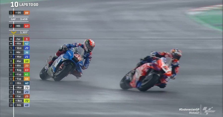 Di awal balapan, Miguel Oliveira (KTM) dan Jack Miller (Ducati) melaju di depan, dan Zarco tidak bisa mengikuti mereka. “Jack dan Miguel luar biasa, mereka menunjukkan kecepatan yang luar biasa sejak awal. Di sisi lain, saya membutuhkan beberapa lap untuk menilai kondisi lintasan,” ujar rider Pramac Ducati itu.