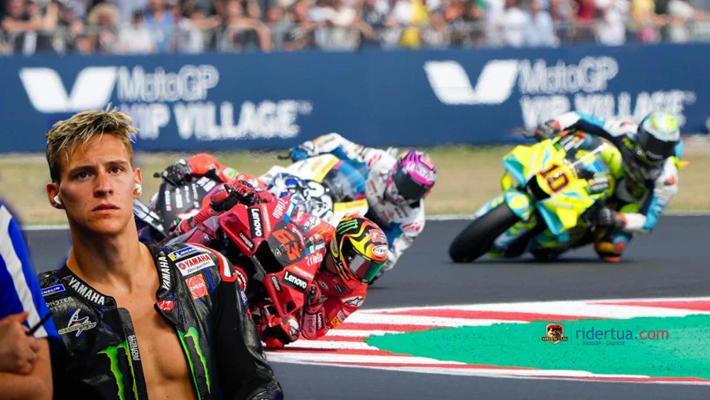 RiderTua.com – Fabio Quartararo gagal meraih podium di Misano. Pembalap Yamaha itu finis di posisi ke-5 setelah 27 lap sementara rival utamanya Pecco Bagnaia (Ducati) berhasil mencetak 25 poin lagi. Balapan MotoGP Misano menjadi ‘perjuangan untuk bertahan hidup’ bagi El Diablo. Pembalap asal Prancis itu memulai race dengan baik bahkan berhasil menyalip Aleix Espargaro setelah rider Aprlia itu melakukan kesalahan. Namun sejak saat itu pemimpin klasemen itu tidak mampu lagi mengimbangi lawan di depannya. “Itu lucunya. Penampilan saya tidak buruk dalam balapan, tapi hanya cukup untuk posisi 5. Bahkan ketika saya sangat dekat dengan Luca Marini, saya tidak bisa menyalipnya,” kata El Diablo.. Secara parsial jika kita klasifikasikan level performa di San Marino, Quartararo berada di level 4.. Pecco dan Bestia level-1, Vinales level-2, dan Luca Marini Level-3, dan Quartararo belum bisa menembus barisan itu, kalau kondisi ini berakhir hingga akhir musim maka kondisi Fabio berbahaya secara matematis poin akan terkejar oleh Pecco (meskipun Pecco tidak menang seri)..