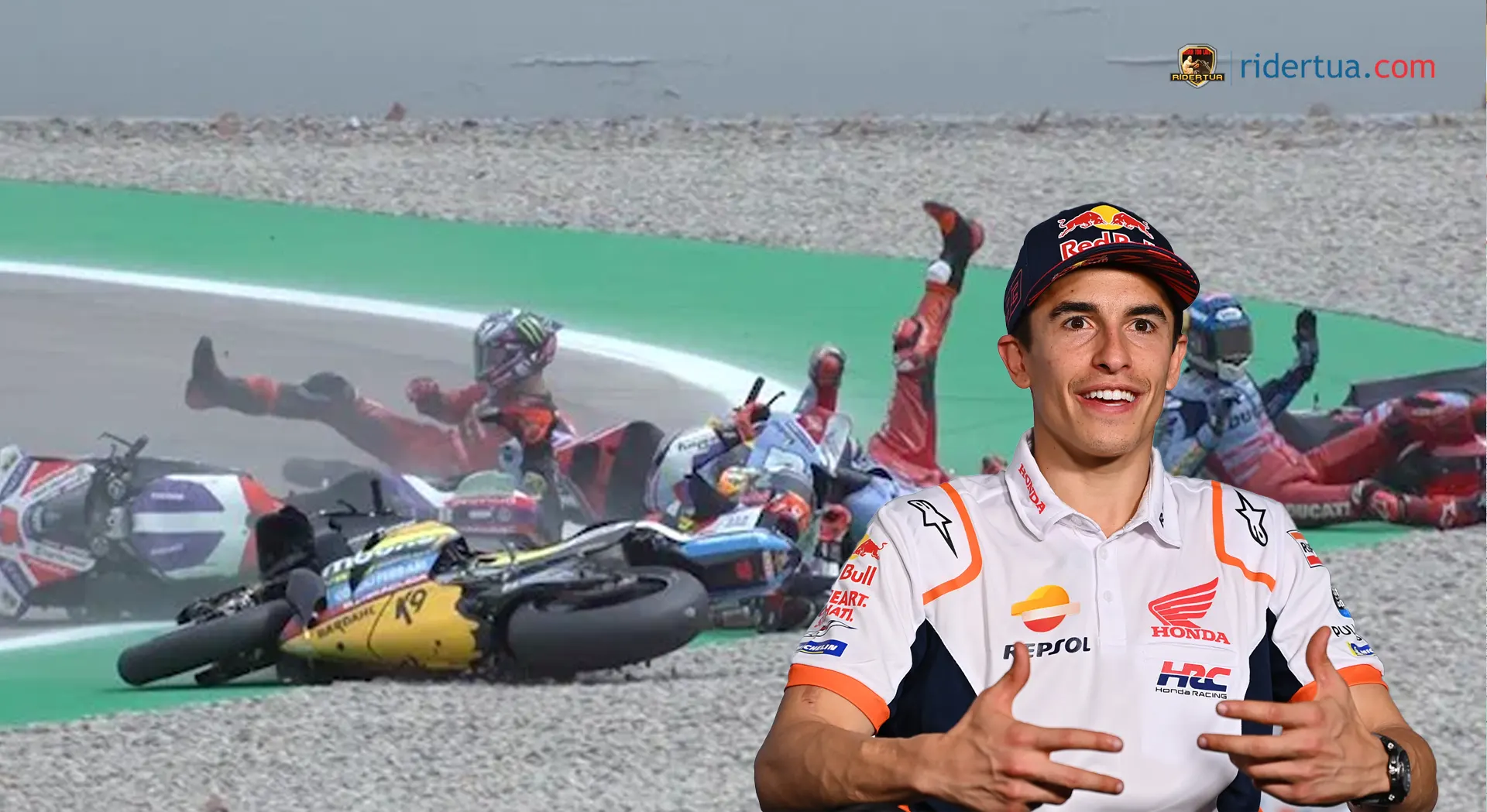 RiderTua.com – Marc Marquez yang start dari posisi ke-12, melihat langsung terjadinya crash massal yang melibatkan para jagoan Ducati di tikungan pertama sirkuit Montmelo-Barcelona. Mengenai Enea Bastianini yang menjadi penyebab terjadinya crash tersebut, rider Repsol Honda itu menjelaskan, “Saya pertama melihat crash ketika saya mengerem di tikungan pertama. Dia kurang lebih berada di level yang sama, dia semakin masuk.”