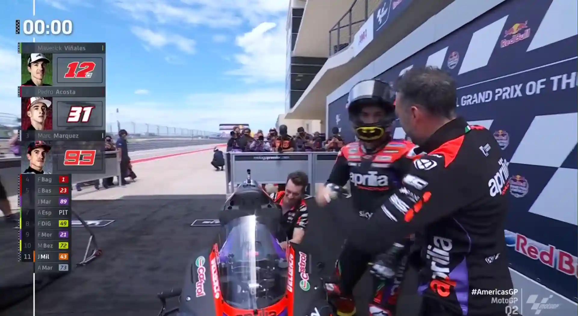 RiderTua.com, Austin – Maverick Vinales won pole position for the American MotoGP race. He was the fastest in qualifying at the Circuit of the Americas (COTA), Saturday, April 13 2024. In Q2, ‘Top Gun’ set the fastest time of 2 minutes 00.864 seconds. The Aprilia Racing rider was +0.328 seconds ahead of Pedro Acosta (GasGas Tech3). The third position was taken by Marc Marquez (Gresini Racing) as well as completing the riders who will start from the first row (front row) in the American MotoGP race after posting a record time of 2 minutes 01.266 seconds.