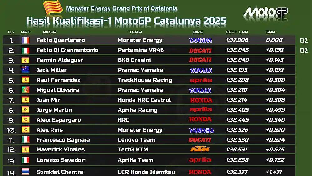 Hasil Kualifikasi 1 MotoGP Catalunya 2025