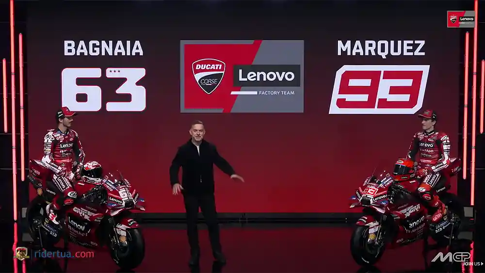 Ducati Lenovo musim 2026 ini tetap diperkuat Marc Mรกrquez dan Francesco Bagnaia, dengan musim 2026 menjadi tahun terakhir kontrak keduanya.