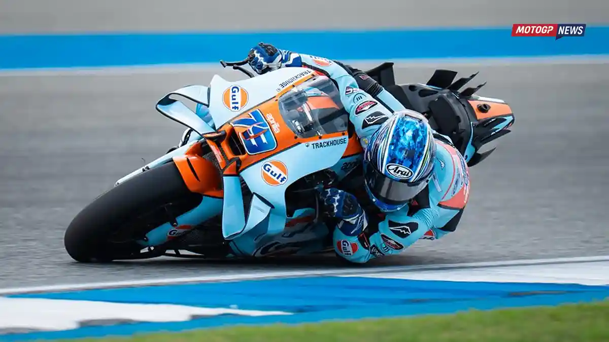 RiderTua.com – Apa kabar pembaca RiderTua? Ai Ogura start dari posisi ke-8 di GP Thailand, ini merupakan posisi start paling buruk jika dibandingkan dengan 3 pembalap Aprilia yang lain. Dalam sprint hari Sabtu, rider tim Trackhouse Aprilia itu tampil impresif bahkan mampu mengalahkan pembalap senior seperti Brad Binder dan bahkan Jorge Martin. Pada akhirnya dia finis di posisi ke-4 dan mencetak 6 poin..