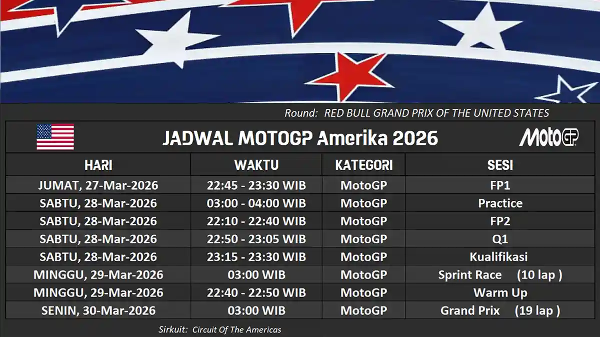 Jadwal GP Amerika Serikat 2026 (WIB/Waktu Indonesia Barat):