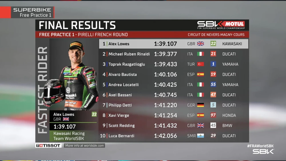 Hasil FP1 WSBK Prancis 2022: Alex Lowes Tercepat