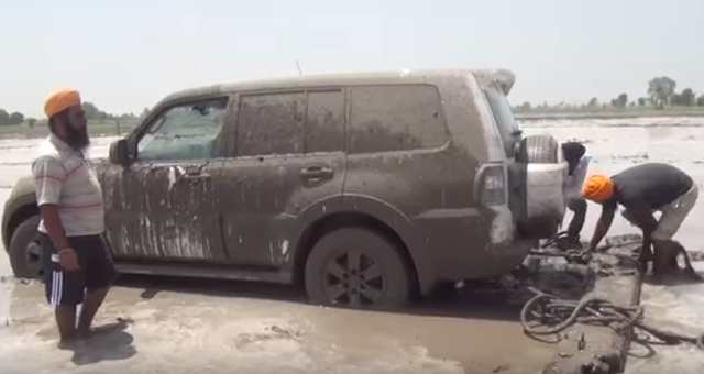Petani Kaya Ini Membajak Sawah Pakai Mobil Pajero, gile bener.
